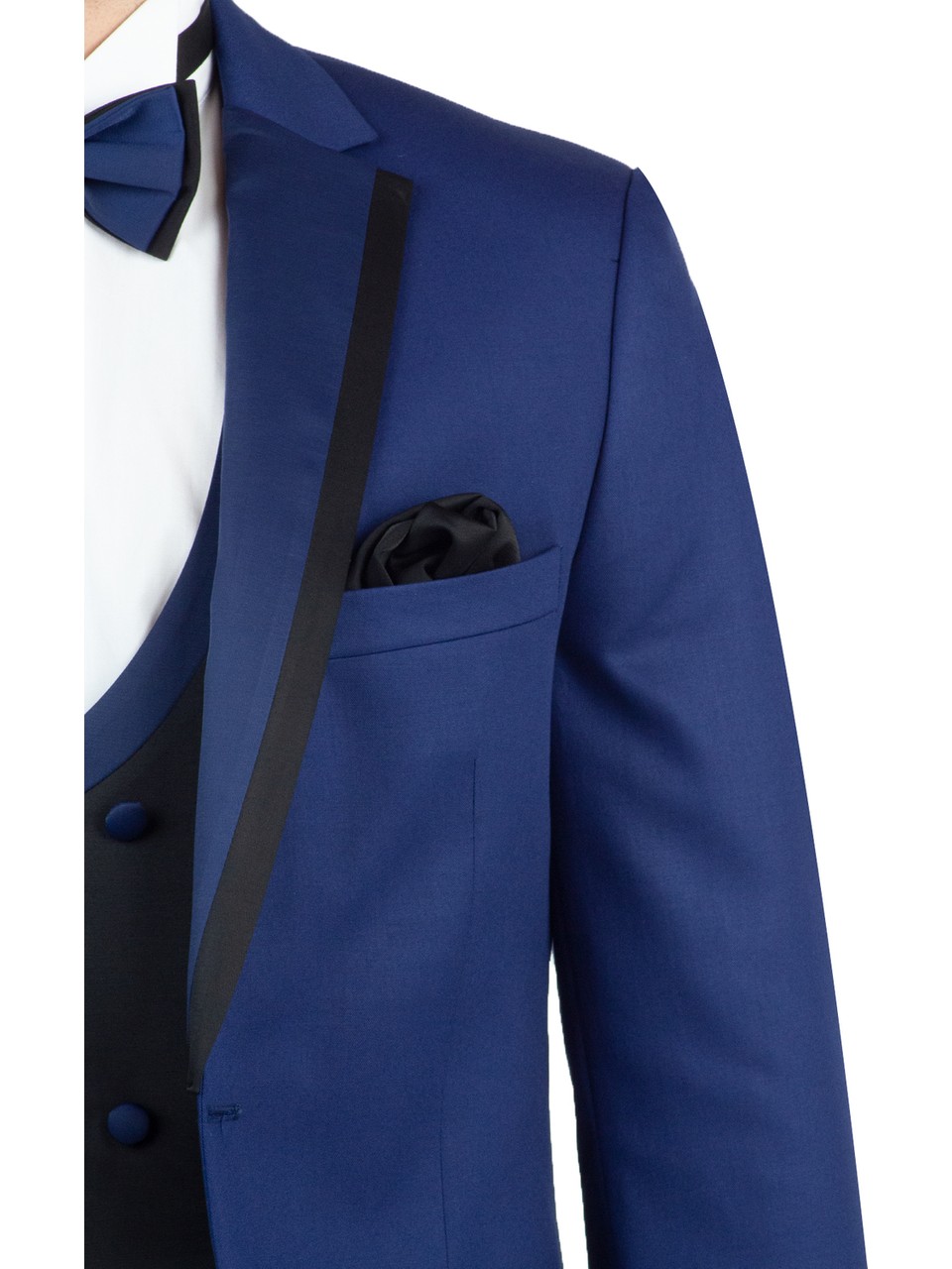 Lacivert Gabardin Mono Yaka Astarlı Yelekli 6 Drop Slim Fit Dar Kesim Smokin Damatlık