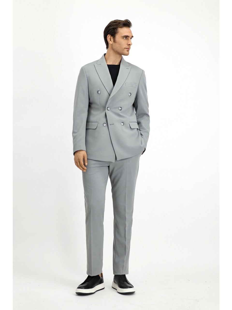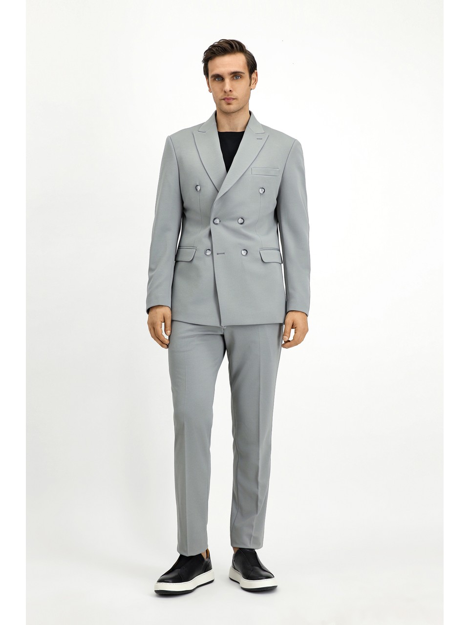 Slim Fit Dar Kesim Kruvaze Takım Elbise