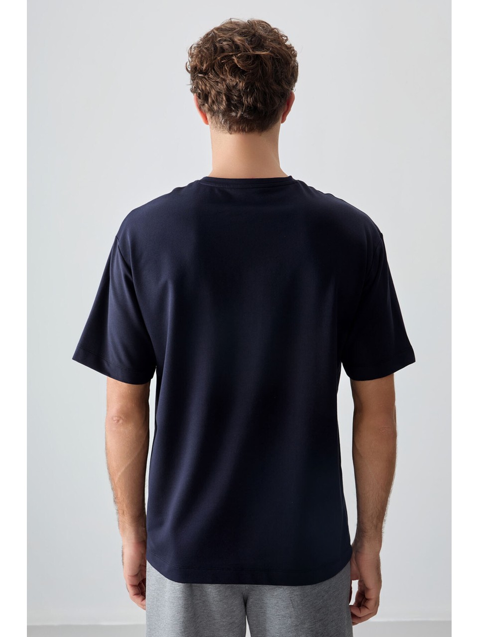 Lacivert Pamuklu Kalın Yumuşak Dokulu Oversize Fit Baskılı Erkek T-Shirt