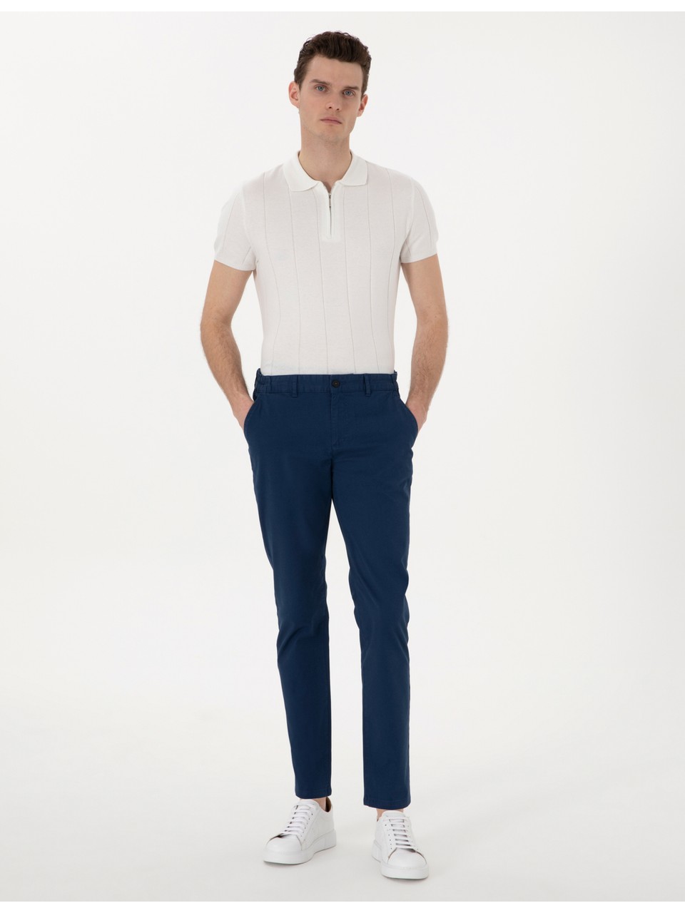 CİNSİYET: ErkekÜRÜN TANIMI: Kanvas / Chino PantolonRENK: İndigoFİT: SlimKUMAŞ: %97 Pamuk %3 Elastan - SpandeksTANIMLAYICI KOD: G021SZ078.000.2231995.VR028MODEL BİLGİLERİ: Boy:186|Kilo:82|Göğüs:99|Bel:74|Basen:97|Beden:50 .M .31|ÜrünBeden:32