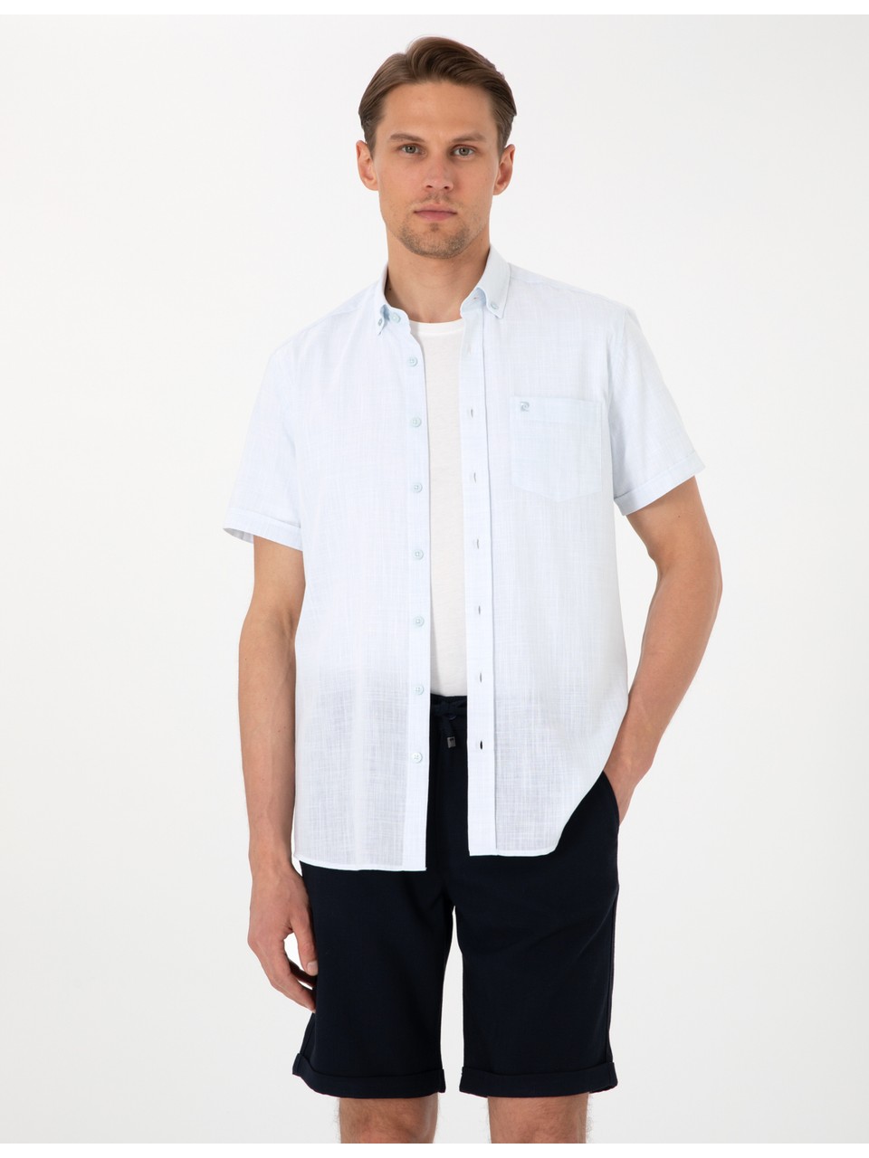 CİNSİYET: ErkekÜRÜN TANIMI: GömlekRENK: Buz MavisiFİT: RegularKUMAŞ: %100 PamukTANIMLAYICI KOD: G021GL004.000.2210618.VR095MODEL BİLGİLERİ: Boy:186|Kilo:74|Göğüs:98|Bel:75|Basen:93|Beden:50 .M .31|ÜrünBeden:M