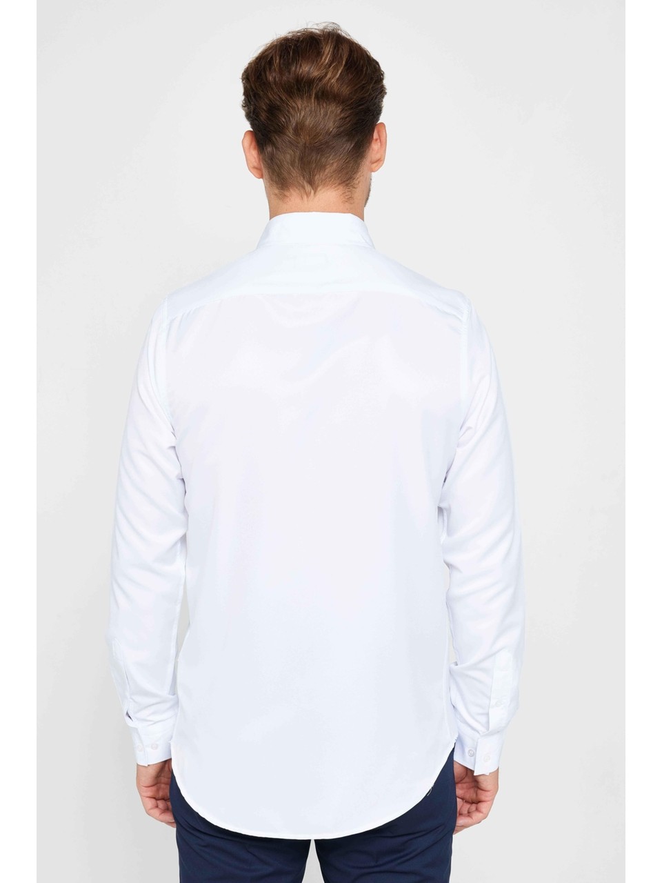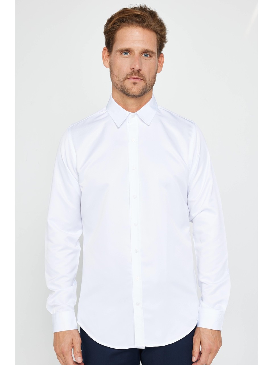 Slim Fit Uzun Kollu Kolay Ütü Teri Emen Nefes Alan Doku Kravatlık Dört Mevsim Beyaz Erkek Gömlek