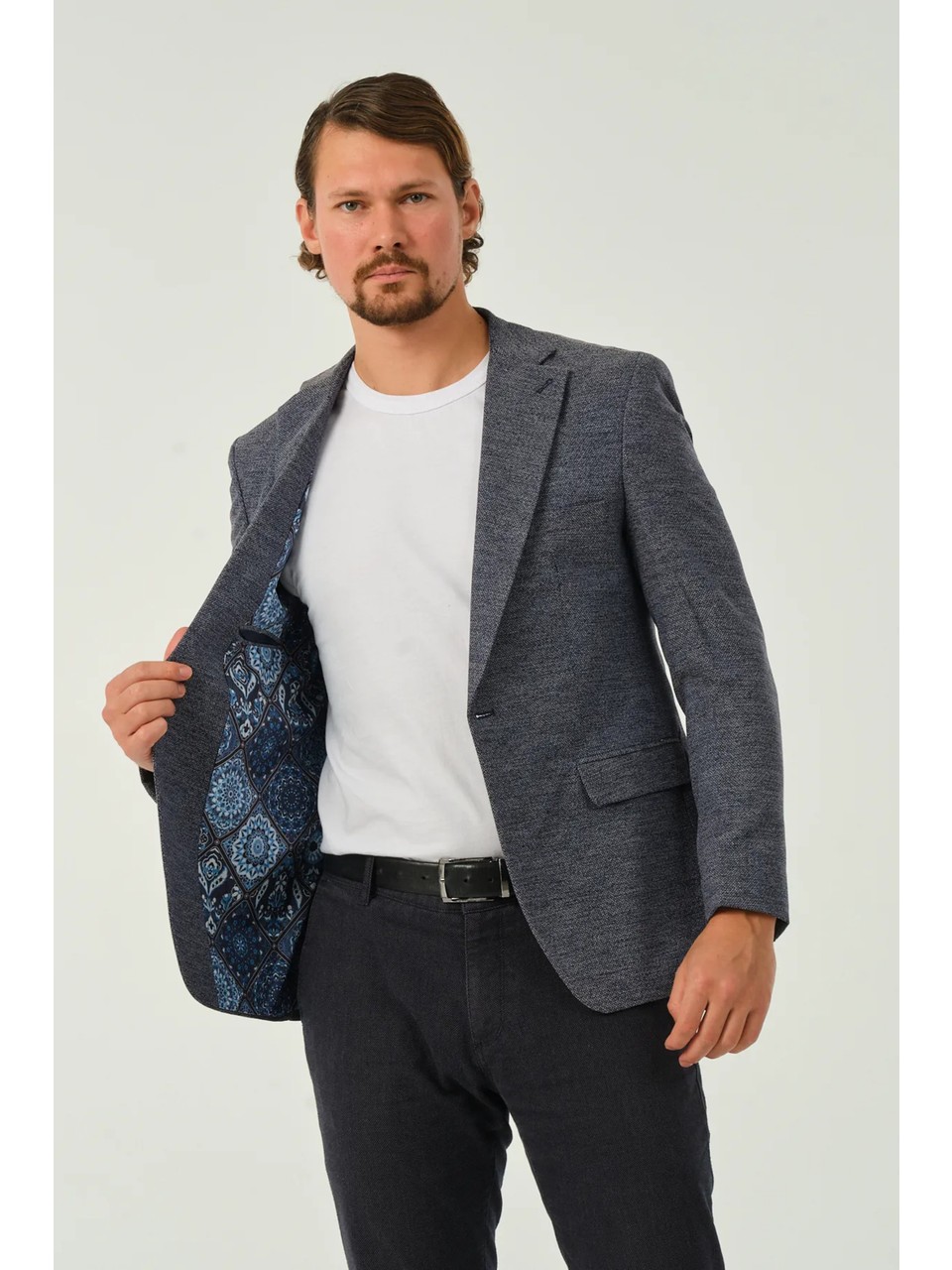 Yüksek Kalite Malzeme: Pamuk ve akrilik karışımı, hafif ama sıcak tutan kumaş. Modern Kesim: Slim fit tasarımı sayesinde vücut hatlarınıza uyum sağlar, şık bir siluet oluşturur. Detaylar: Düğme kapama, yan cepler ve şık dikiş detayları ile tamamlanmış. Neden Tercih Etmelisiniz? Çok Yönlü Kullanım: İş görüşmeleri, akşam yemekleri veya günlük aktiviteler için idealdir. Kolay Kombin: Tişört, gömlek veya kazak ile kombinleyerek farklı stiller yaratabilirsiniz. Rahatlık: Esnek dokusu sayesinde hareket özgürlüğü sunar. Model ölçüleri: Boy: 188 cm Kilo: 82 kg Göğüs: 104 cm Bel: 84 cm Basen: 100 cm Numune bedeni: 54 Yıkama talimatları: Kuru temizleme önerilmektedir; bu sayede ceketinizin uzun ömürlü olmasını sağlarsınız.