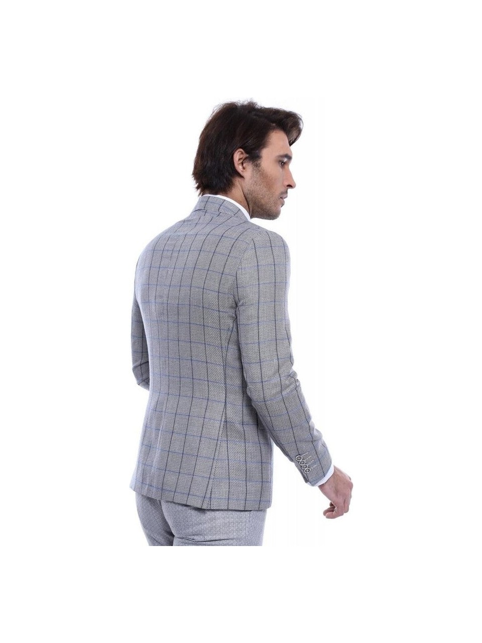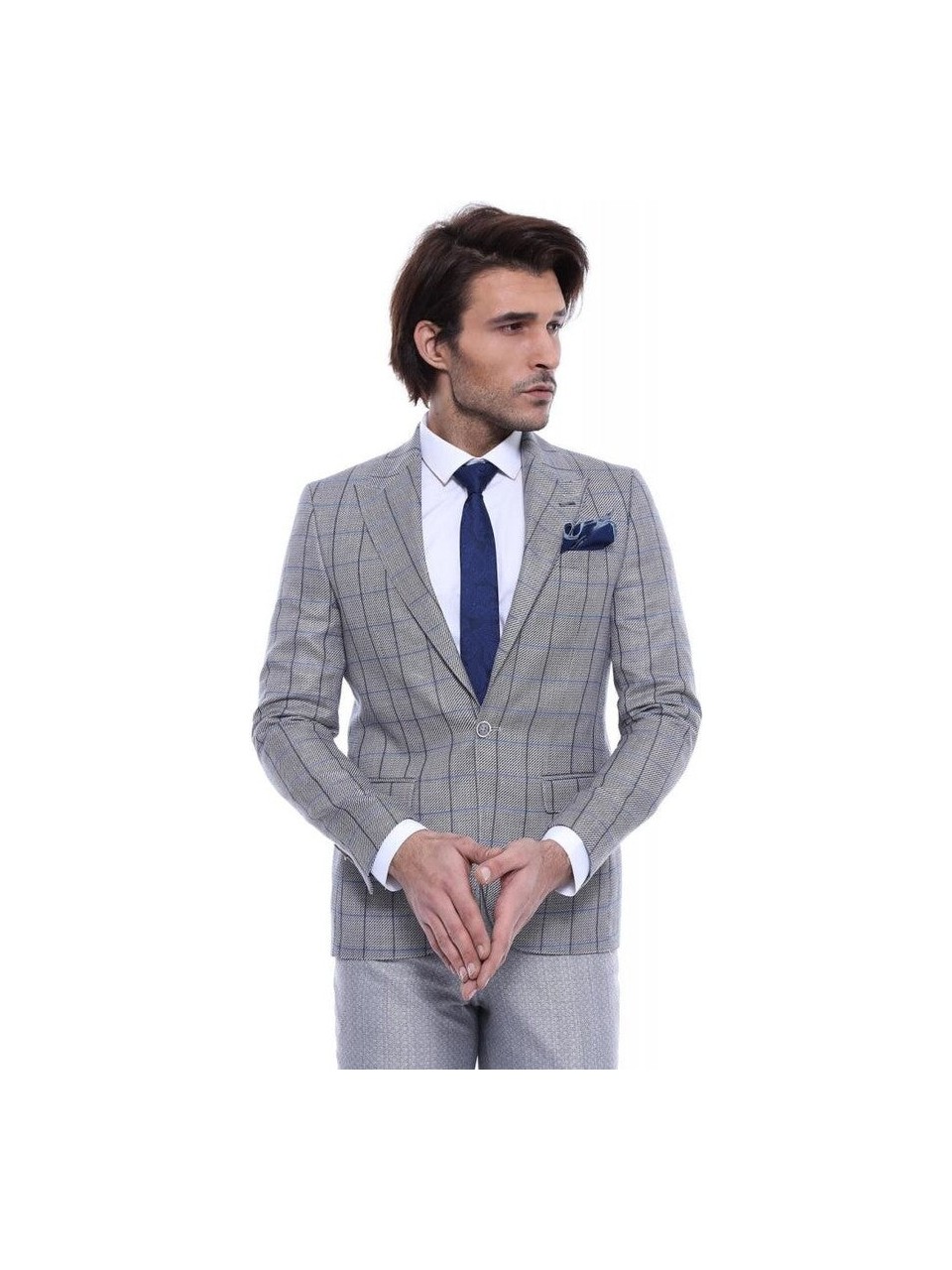 Ekose Desenli Kumaşla Tasarlanmış Slim Fit Tek Düğme Gri Renk Ceket Modelidir.