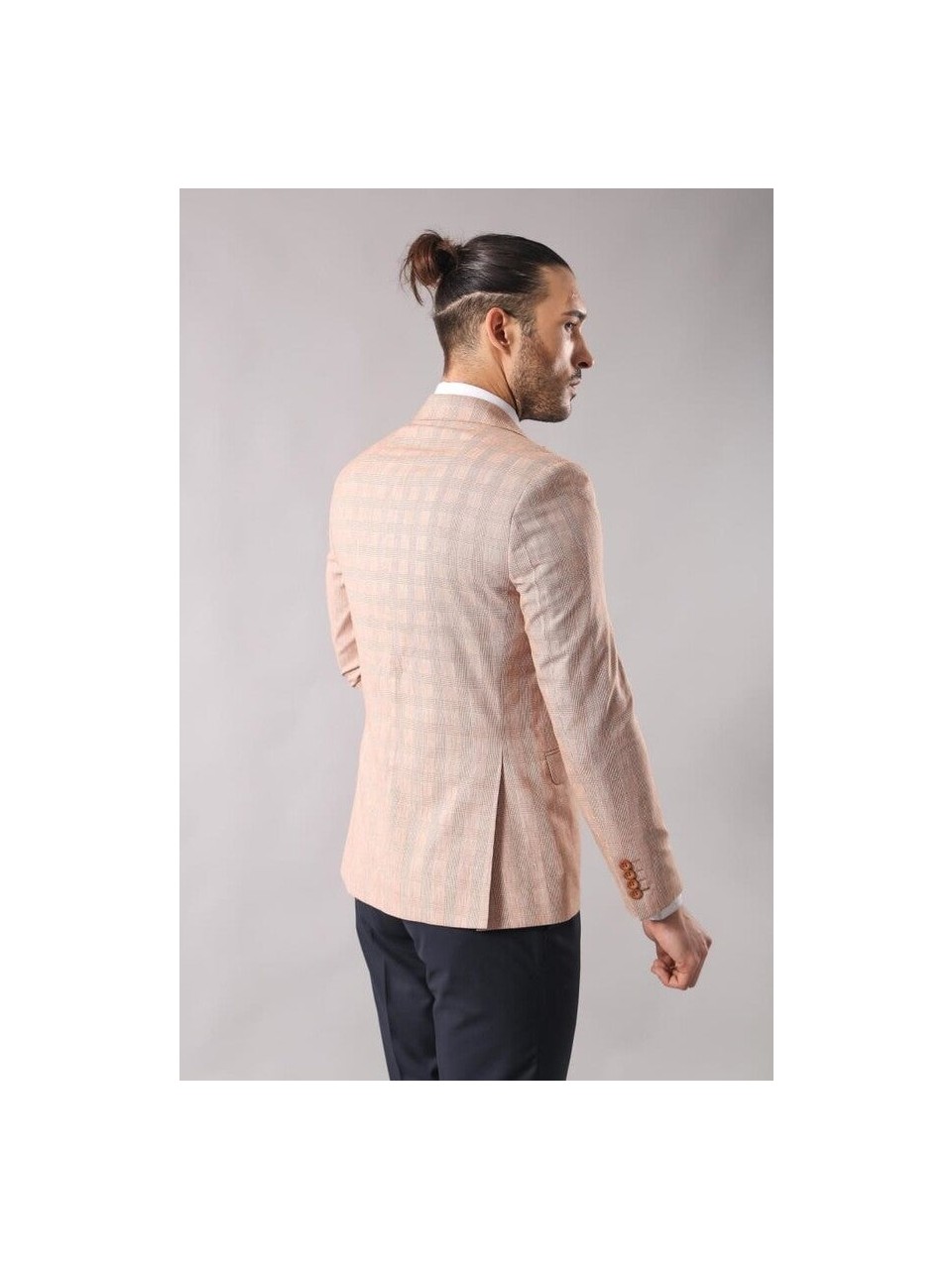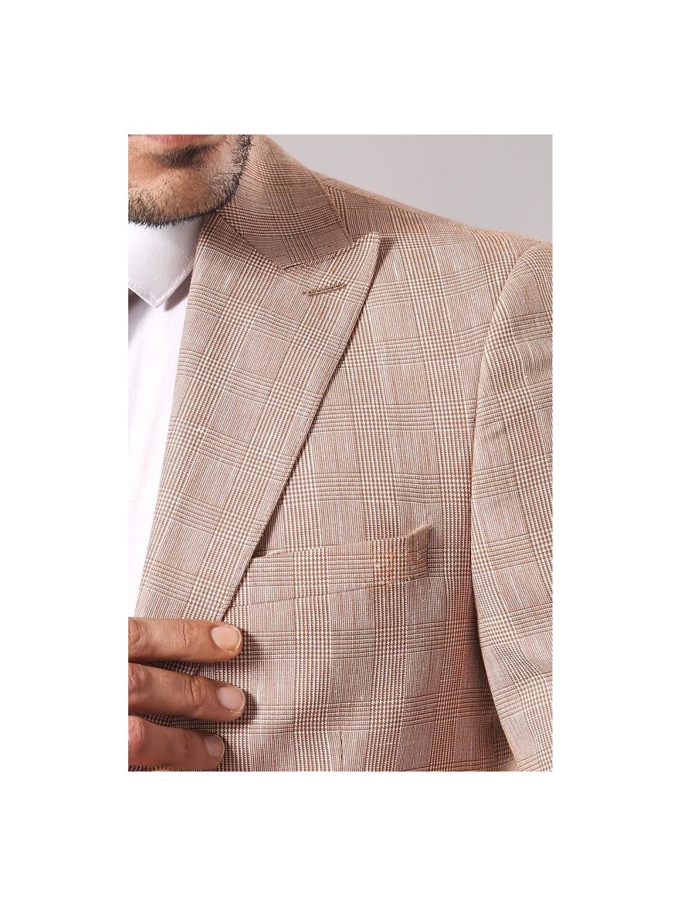 Ekose Desenli Kumaşla TasarlanmışTek Düğme Slim Fit Bej Renk Ceket Modelidir.
